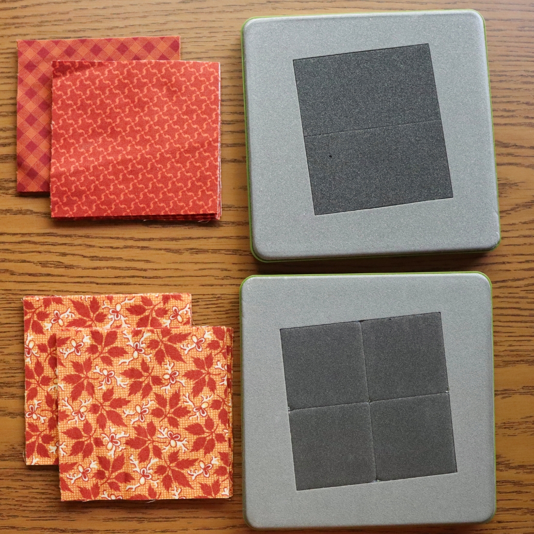 If you have an AccuQuilt GO! Qube Mix & Match set, this technique works by pairing any 2 and 8 from the same set. A single layer of fabric makes 2 Flying Geese units. It takes 32 Flying Geese to make the 4-block variation, so I cut: