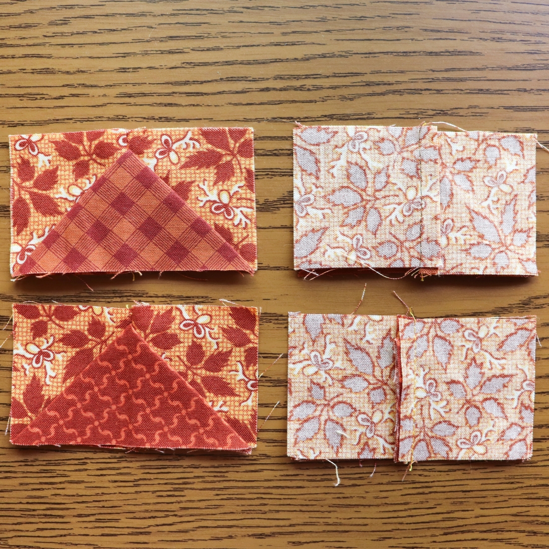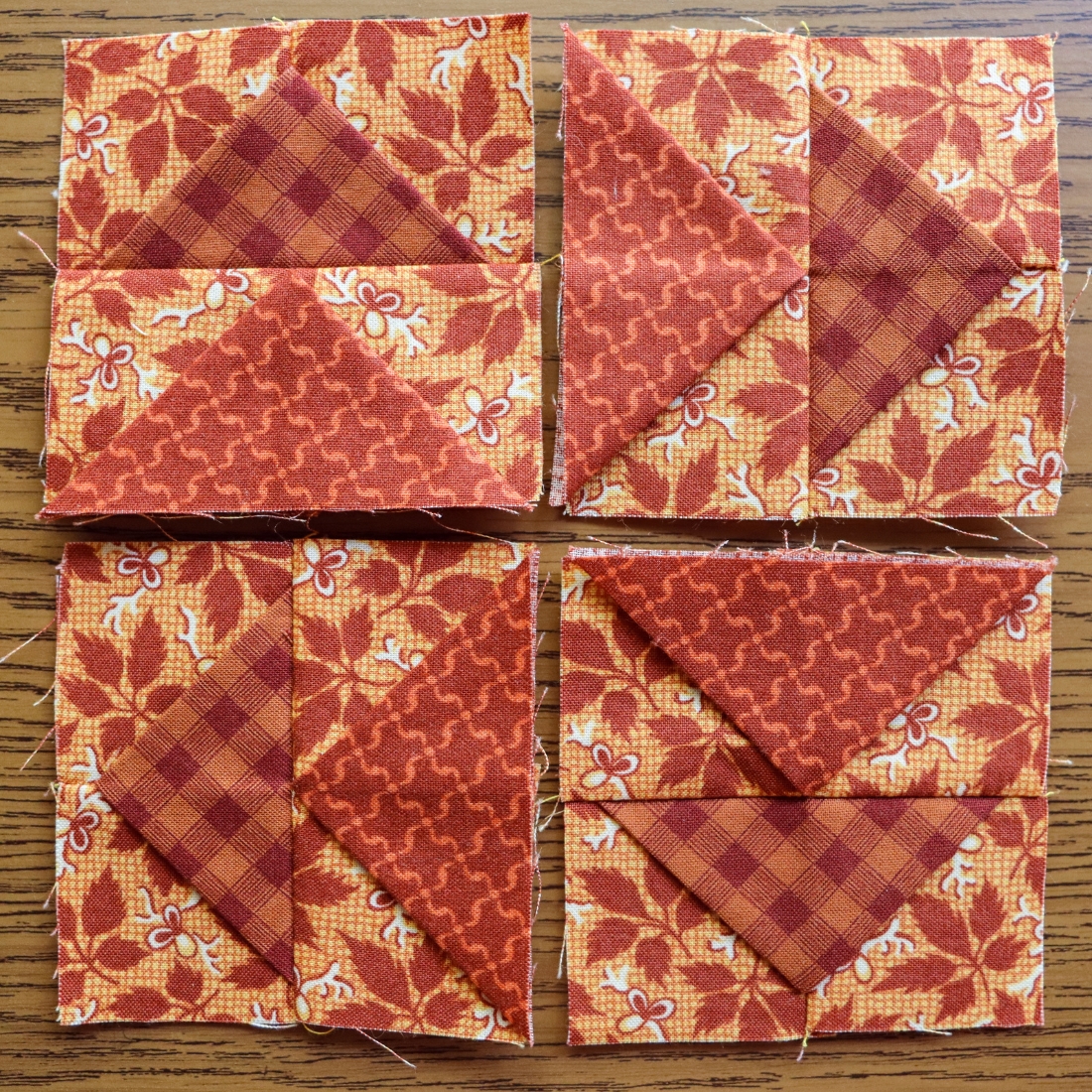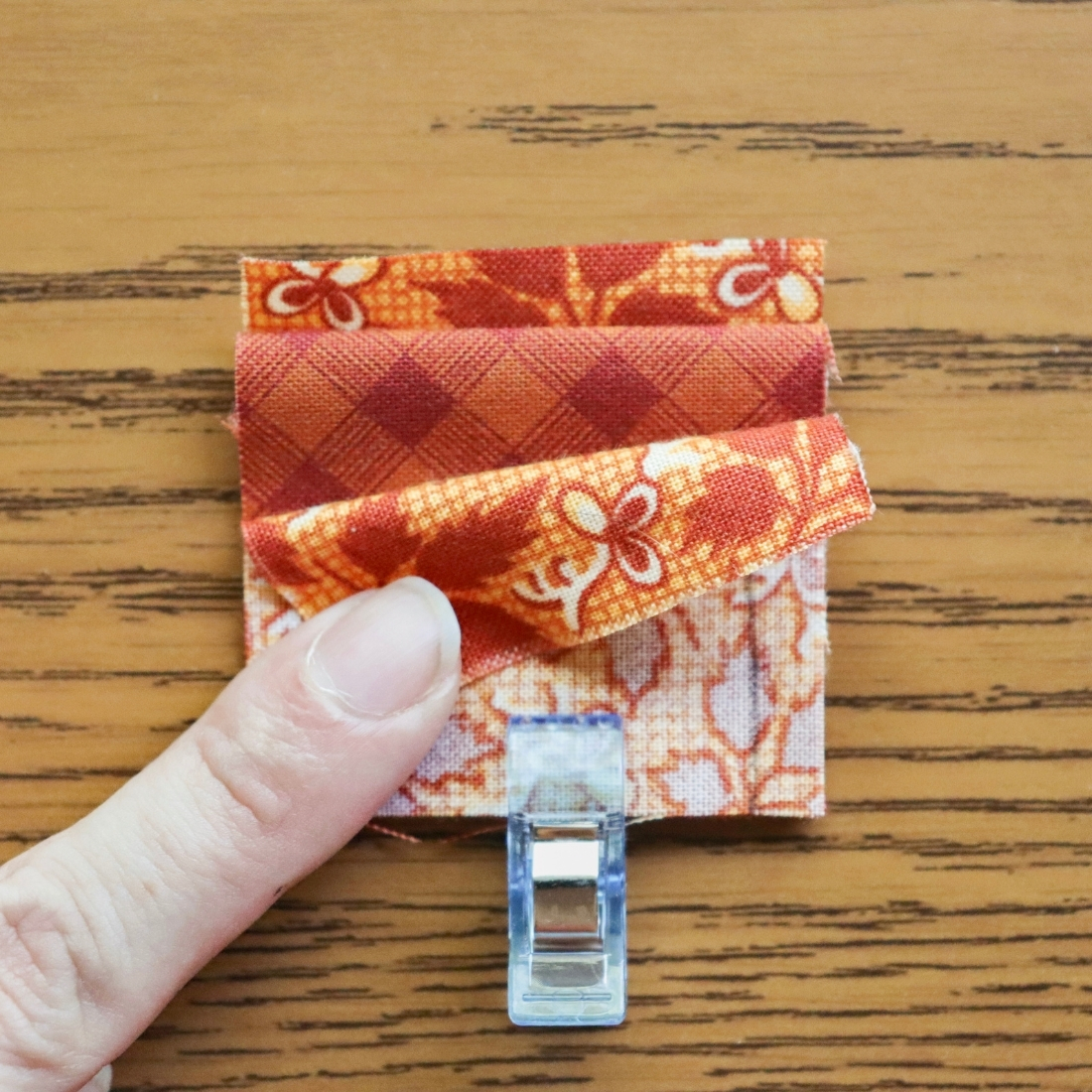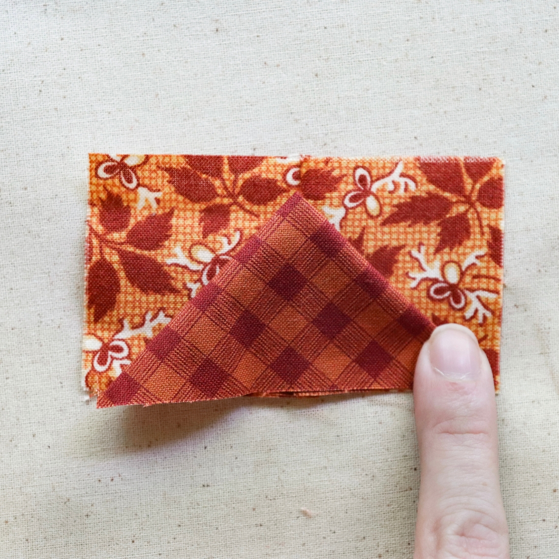 If you tend to press seams open, try pressing towards the small triangles for this block. Even if you are someone who skips heat pressing, make sure to get a crisp fold using your preferred pressure pressing method.