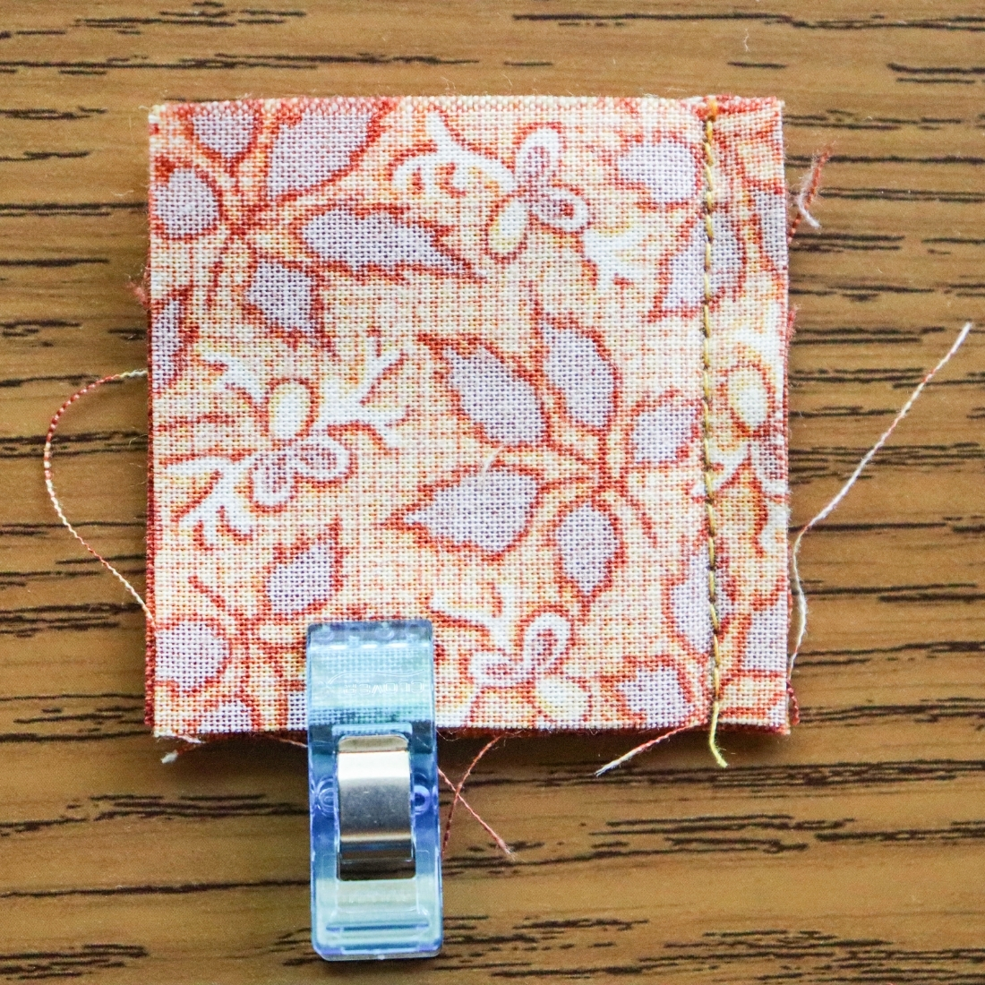 Layer the other Sky square on top, right sides together, as shown above. Place a craft clip or pin to hold the layers together, if desired.