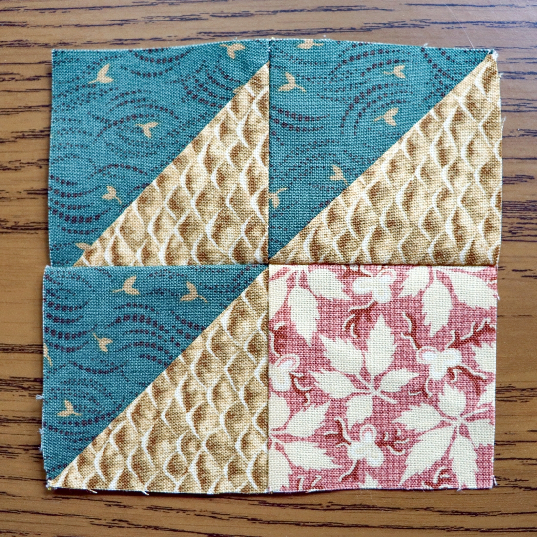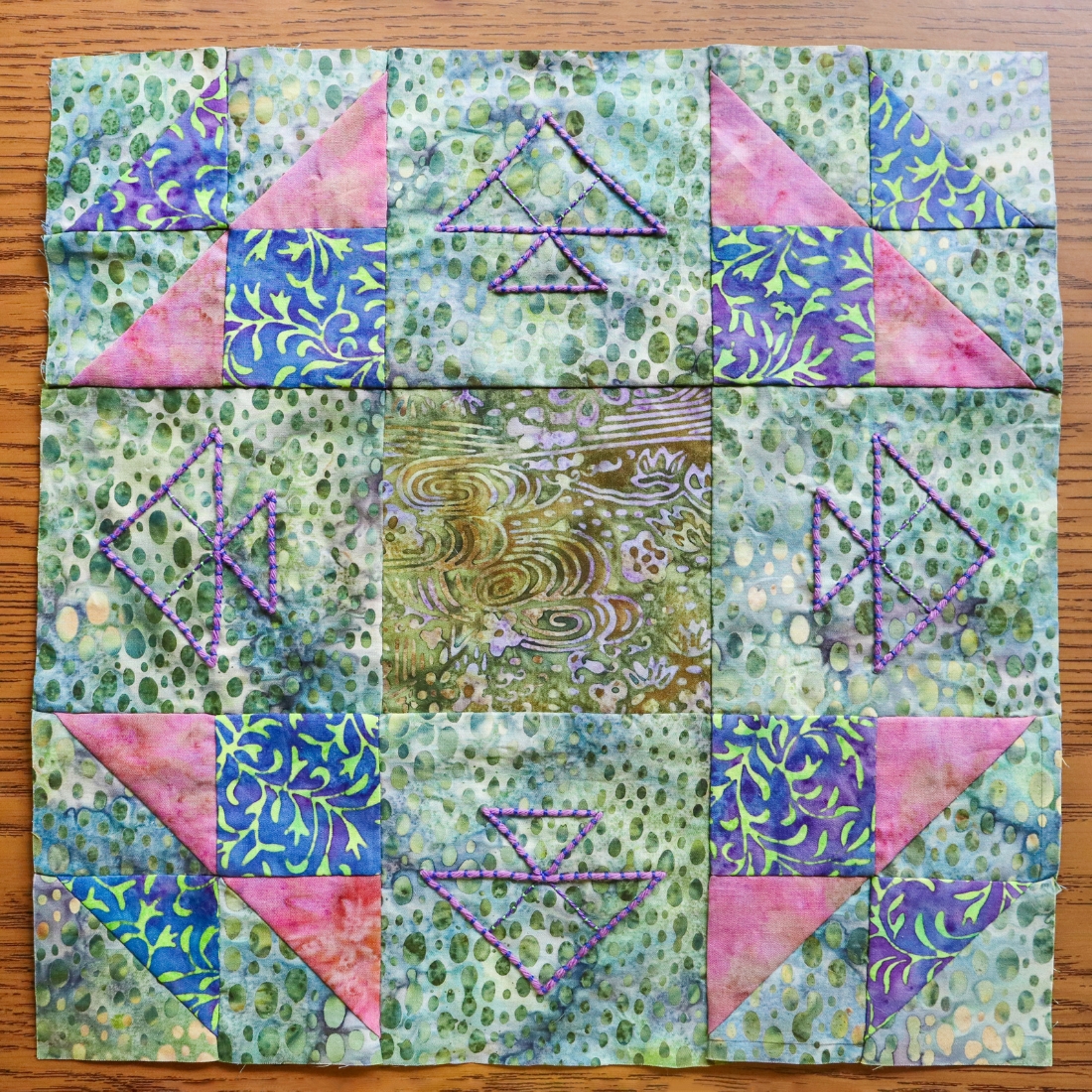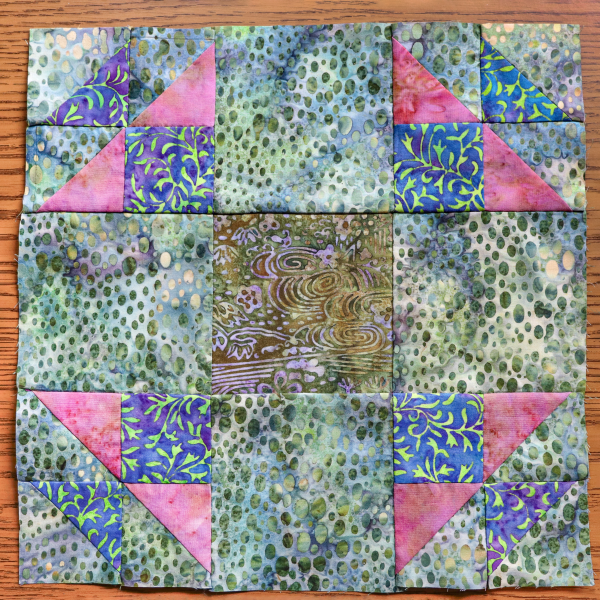 This month’s block, Fish, features half square triangles, and follows the same structure as a nine-patch.
