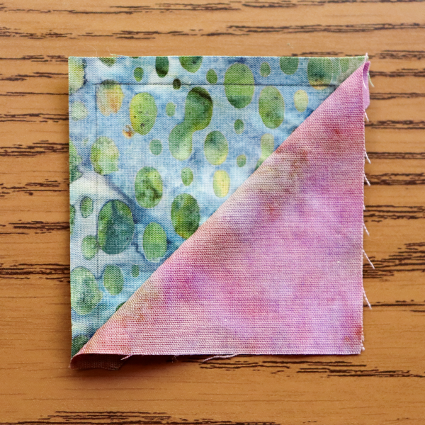 Finger press the HST unit. The unit measures 2½" x 2½" square, unfinished. Repeat to make 12 HST units.