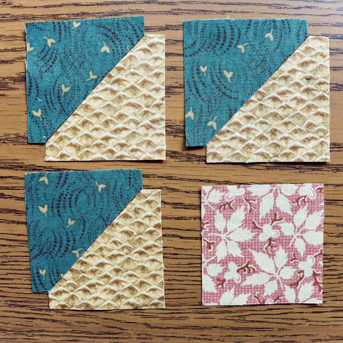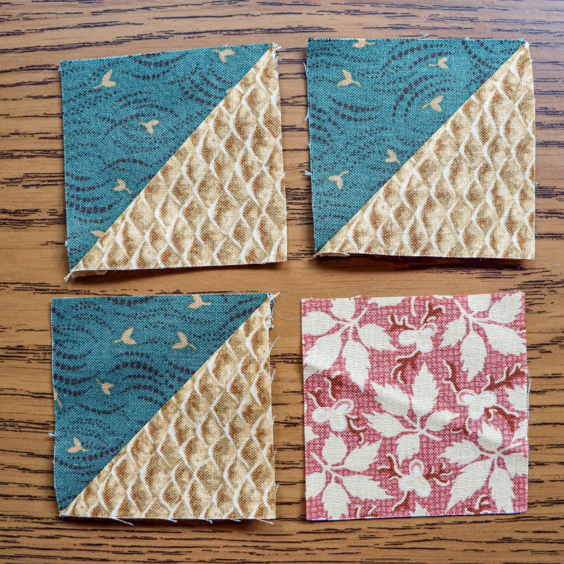 Hand piecing Fish uses all the same techniques as you used for the previous blocks to create half square triangle units.