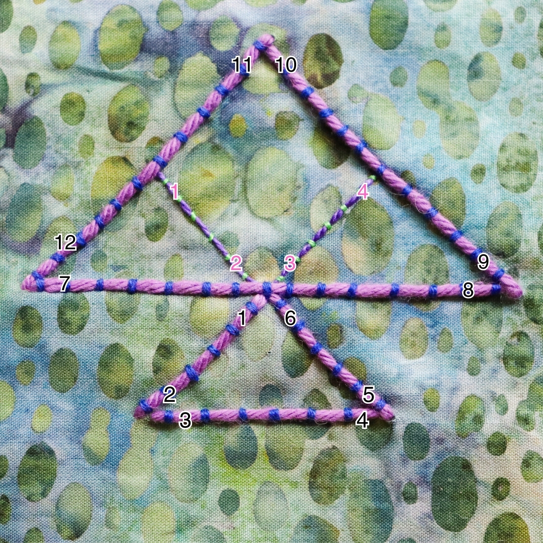 I encourage practice runs to learn what you don’t know yet. I always discover something that will make creating the final version more enjoyable and rewarding if it’s solved ahead of time. For example, with this motif, it was very helpful to map out the stitching route for the laid yarn.