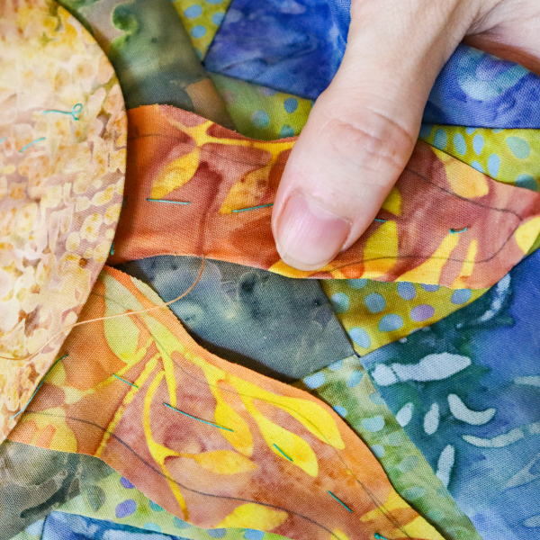 Take a moment to familiarize yourself with the appliqué stitch, demonstrated in this video by Mary Sorenson. This is the stitch we’ll use throughout the tutorial.