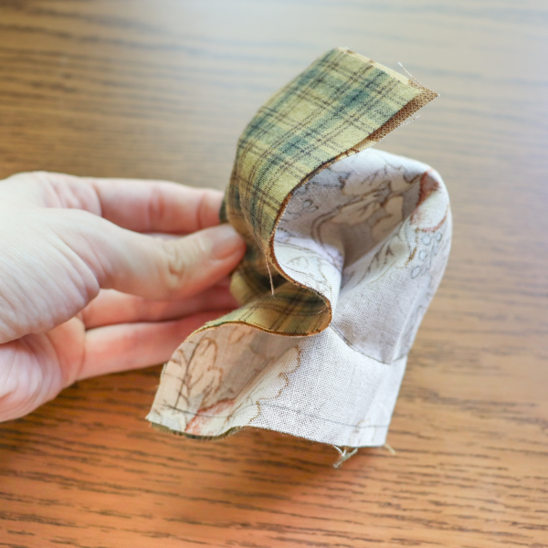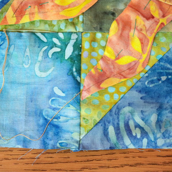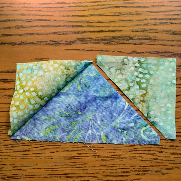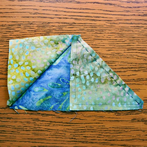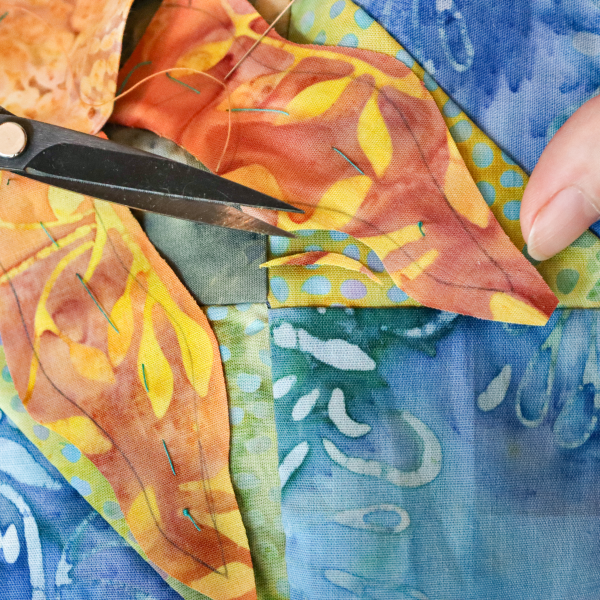 Clip curves or trim the seam allowances as needed to help shape the fabric. I used a low-fraying batik fabric, so I chose to trim seam allowances.