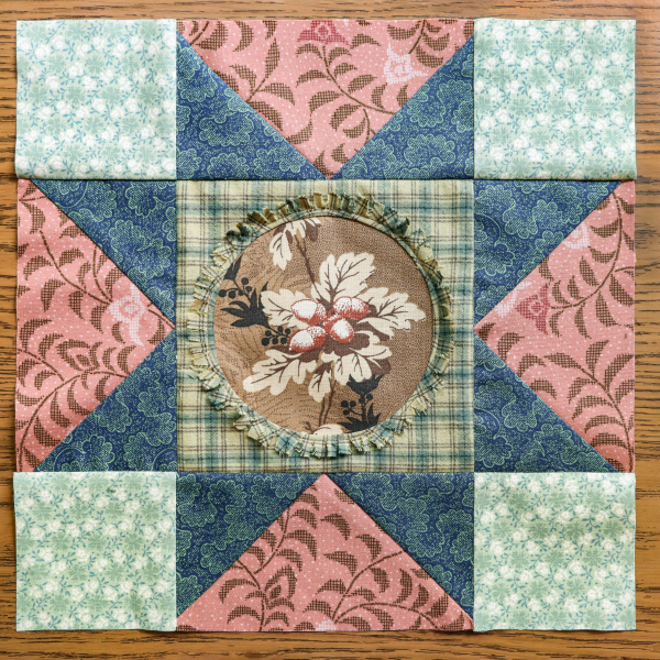 The first step to creating an appliqué motif is to imagine one you’d like to make, right? When I think of a piece of muslin, it’s as intimidating as any blank page I’ve ever faced. It’s hard to engage the imagination while intimidated. So the actual first task is to create a lovely canvas that gets us more excited than we are intimidated. Make a quilt block, like a Sawtooth Star.