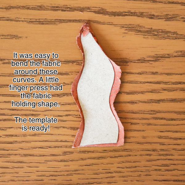 This is what my test piece looked like from the back after folding and finger pressing. It’s like the fabric was sculpted to it. The template is ready!