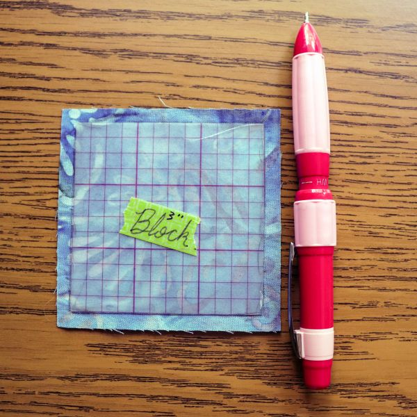 Remove the template and tighten up any loosened stitches. Perfect the shape and press from the front to set it. Next, fold the block half and crease, repeat in the other direction to create a placement grid with the creaselines.