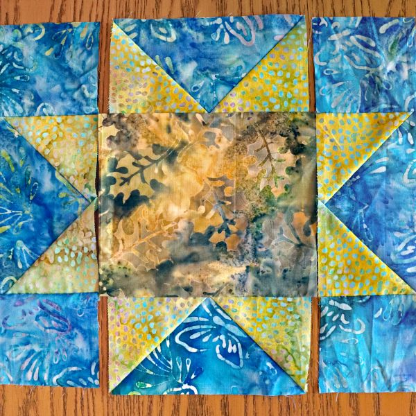 “It’s impossible to beat a classic, which the Sawtooth Star block most certainly is with quilts featuring the motif dating to as early as the 1770s. It’s still a go-to for modern quilt design, and I recommend checking out some other great free patterns from AQS featuring Sawtooth Stars like, Summer Star, Freedom Star, Autumn Star, Christmas Star, and Scrappy Star Log Cabin. When starting this block, I felt the call of the fabric and pulled a new color way, leaning into earthy batiks that evoke natural beauty older even than quilting. Let’s look for inspiration in the world all around us as we stitch the Sawtooth Star and many more blocks in the days ahead.” -Emily Cross, Ozark Modern Crafting