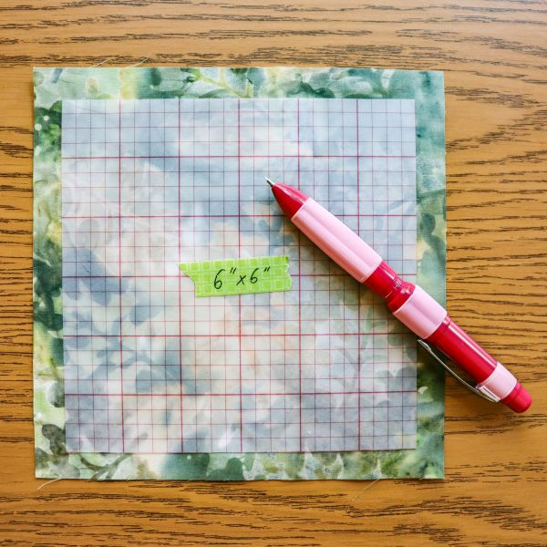 Step two: Trace the template on the backside of the fabric, leaving enough room between the patches for the seam allowances (a 1/4" or so for each patch is preferred for the seam allowance, but it's not a rule for hand piecing - you'll learn what you like best).