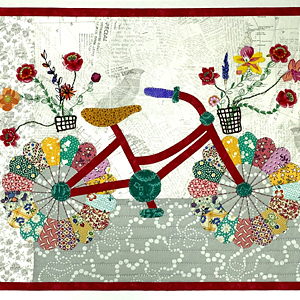 Create a Mini Whimsical Bicycle art quilt while learning skills to use in future projects. Hone your paper piecing skills with the freezer paper technique that finishes with no paper to pick off. Learn easy peasy turned-edge appliqué using bias tape makers, raw edge appliqué, and couching. Kit includes everything you need to complete the quilt top. Registration for this class includes show admission for Wednesday.