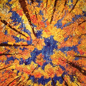 Create a bug's eye view of nature with confetti cut fabrics “painted” on quilt backing. Layers and layers of tiny bits of batiks, hand-dyed, silk, and solid fabrics create this quilt. Fussy-cut tree trunks and branches are added before topping with a layer of tulle. Quilting threads embellish the art quilt with free-motion stitching. You can bring a photo to work from or borrow one from Sally.