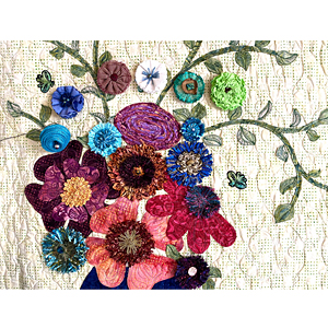 Add a spark of color, texture, and bling to your next art quilt, table runner, or fashion accessory. Learn multiple techniques using fibers and fabrics you already have in your stash to create flowers, headbands, hair clips, bags, wall decor, brooches, and baby room decor. You will use sari silk ribbon, specialty yarns, metallic thread, rickrack, ribbon, burlap, tee shirts, beads, buttons, and so much more. Leave with an array of small completed projects and the skills create more.