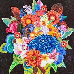 Learn to create a small wallhanging of a lush bouquet of flowers and leaves arranged in a vase. By pre-cutting flowers and leaves before class, most of the hard work is done. The appliqué and quilting will be completed in one step and you will leave class with a mostly-finished piece ready to bind. Relax and have fun as you design and create a bouquet that reflects your own unique style! Registration for this class includes show admission for Wednesday.
