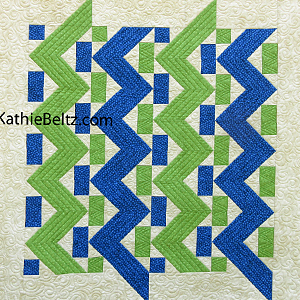 Around the Pond is one of the quilts from Kathie Beltz’s pattern line! This quilt consists of strips of two different sizes of Migrating Geese. Once you have created both the left-hand and right-hand units of geese, piecing the units into strips goes quickly, and your geese will be flying around the quilt in no time.