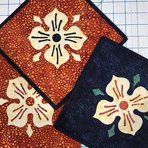 Use your creativity while learning to make the Spring Mola mug rug with the Eye of the Beholder’s easy four-step method. Molas, made famous by the Kuna people, are multi-layered reverse appliqué pieces that are created by cutting down through the layers and hand stitching them to the layer below. Everyone begins with the same pattern, but the variations grow endless as creativity takes over. Learn how to create your own design motifs and think through your design to create your own added design motifs. The Mug Rug Mola project will use 3 layers of contrasting fabric: a top, middle, and background layer, with accents of a fourth fabric for appliqué. Though the stitching is done by hand, you will learn how to baste both by hand and machine for speed.