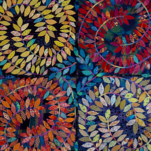 A leafy gala of fabric, color, guided free-cutting, improvisation, and free-motion stitching. Great first experience for those new to free-motion machine quilting! Super fun, and most everyone finishes their little quilt (small version of pictured).