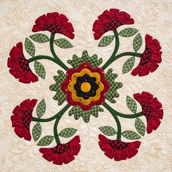 Introducing the Carnation Baltimore Album style quilt block, an impressive 18" traditional quilt block designed by Annie. This block features machine appliqué with raw edge fusible techniques, making it perfect for quilters of all skill levels due to its shallow learning curve. The Carnation block showcases smooth curves and perfect points, highlighting the beauty of the carnation flower. Annie’s unique design ensures that each petal and leaf is meticulously crafted, bringing a touch of elegance to your quilt. Whether you choose to add this block to a larger quilt or finish it as a standalone piece to frame, the carnation's intricate details and vibrant design make it a standout piece that tells a story of craftsmanship and creativity. Registration for this workshop includes complimentary show admission for Wednesday.