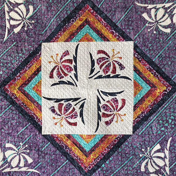 Explore the dimensional impact of positive and negative space as you bring the whimsical Spring Rains Bloom block to life by hand. Have fun creating the greenery with reverse appliqué and the petals in appliqué. Margaret’s signature Trace, Baste, Snip & Stitch method is used for both appliqué and reverse appliqué. It’s just a matter of knowing where to cut to create your seam allowance. Plus, get pointers on how to successfully needle-turn appliqué, giving you crisp points and graceful curves.