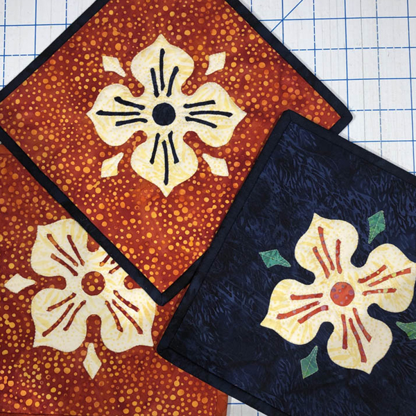 Join the fun and be empowered! Make the elegantly playful Tudor Rose Mug Rug by hand with reverse appliqué for a unique, dimensional look! The techniques you will use are the same for both appliqué and reverse appliqué. It’s just a matter of knowing where to cut to create your seam allowance. You will learn Margaret’s quick and easy steps in the Eye of the Beholder’s trace, baste, snip, and stitch process to create your mug rug by hand. Margaret will give you pointers on how to successfully needle-turn appliqué, giving you crisp points and graceful curves. See the dimensional magic of the Tudor Rose Mug Rug (8” x 8”) revealed as you stitch. It’s so cute in an assortment of colors, you can’t make just one. What color will you make yours? Learn with others and experience the fun and beauty of reverse appliqué by hand!