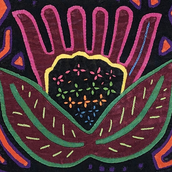 After the stitchwork of a Mola is complete, interest is added by the Kuna makers with some very finely worked basic embroidery stitches. The running stitch, seed stitch, chain stitch, feather stitch, fly stitch, and buttonhole to name a few. They are worked in threads or floss. Come learn these basic stitches and how they are used so you can embellish your Molas/ favorite quilt pieces with embroidery with a modern twist.