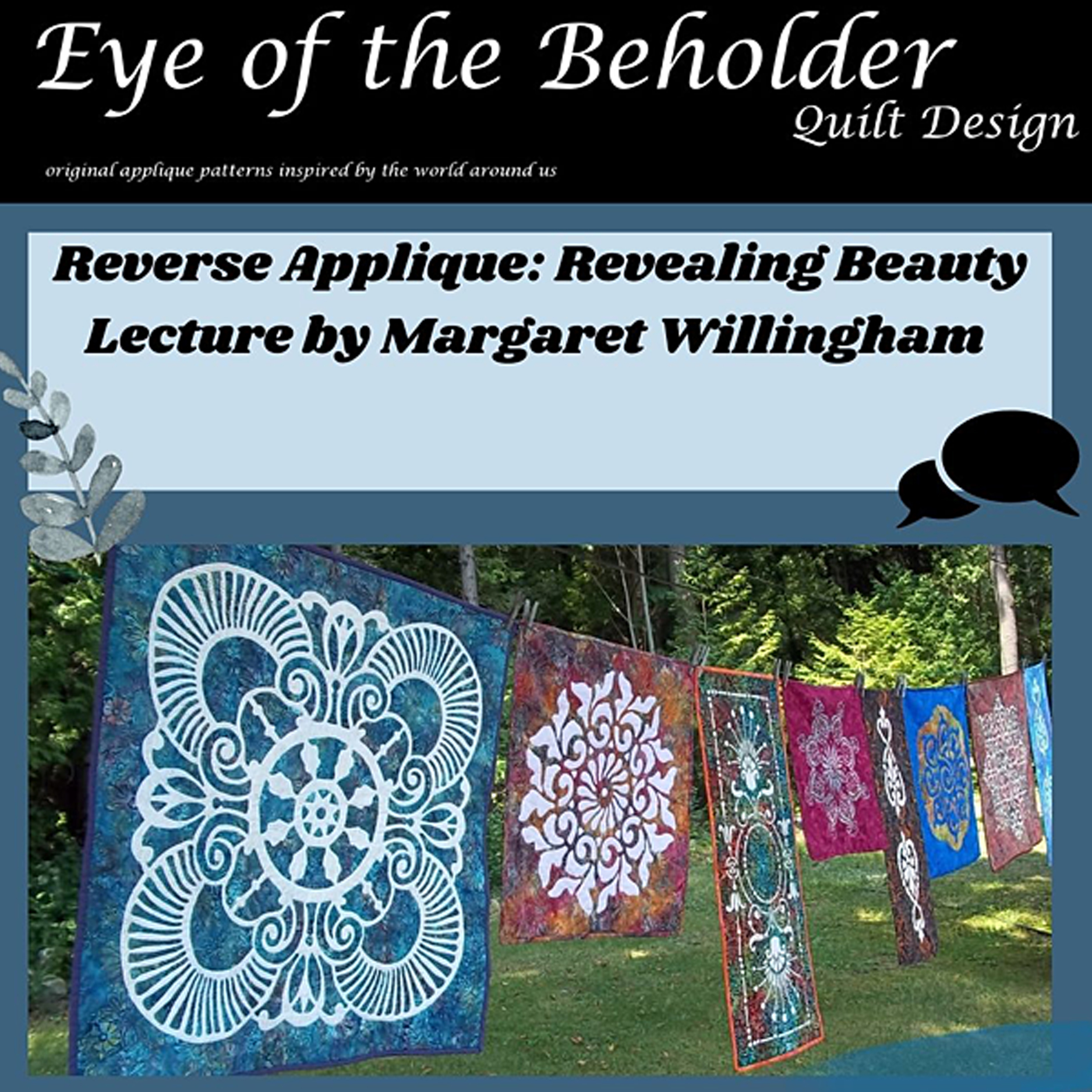 See the reverse appliqué quilts of Margaret Brewster Willingham, the founder and creative force of Eye of the Beholder Quilt Design, and be inspired! Lunch will be provided for you. There will be options to choose from during registration. Lecture will start at noon once meals have been given out.