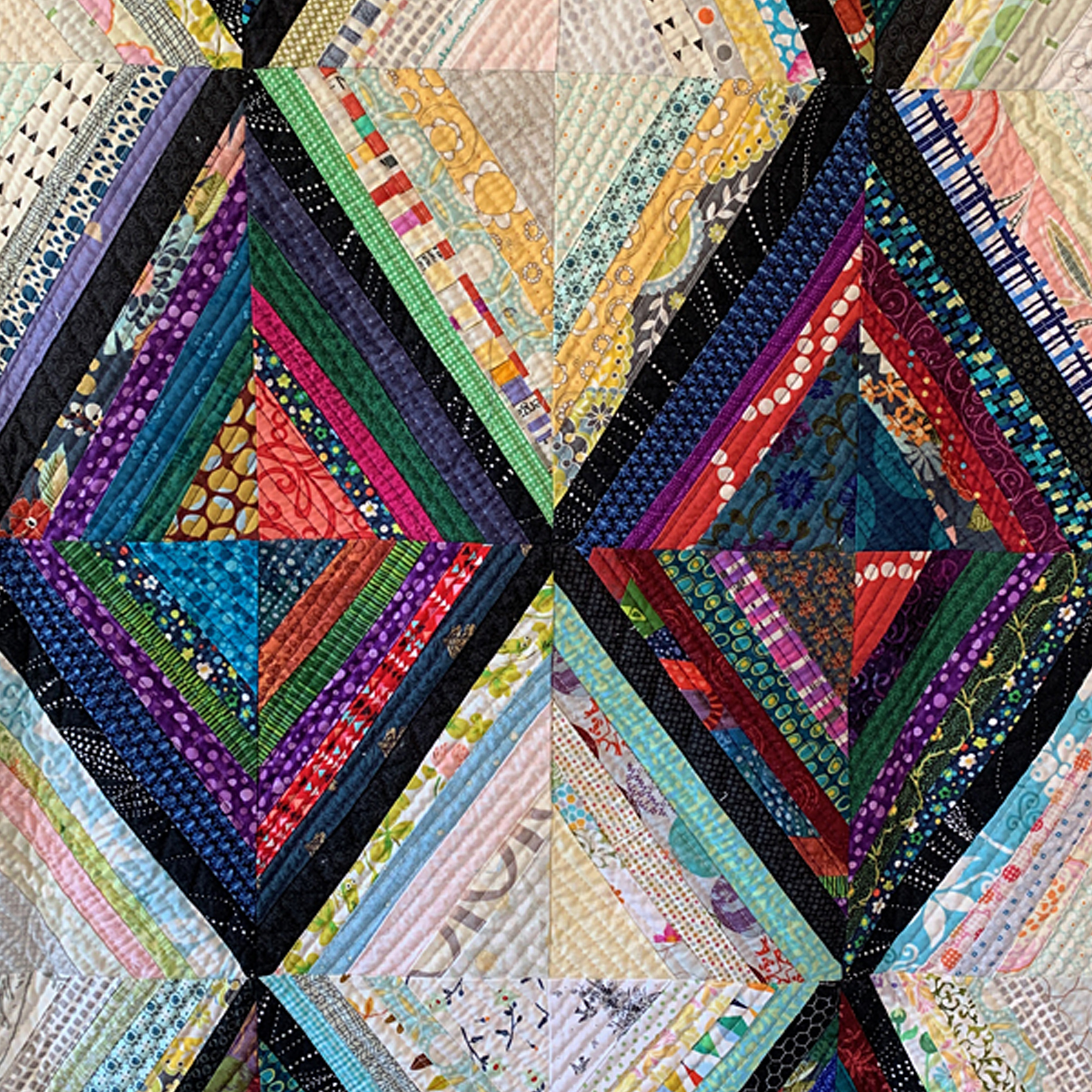 Fall in love with diamonds! Let’s use up all those leftover strips and strings from previous projects and turn them into a fantastic quilt! Improvisationally pieced rectangles make light and dark diamonds when placed together. This results in a visually graphic layout with very little cutting and prep so you can get right to the fun. In this half-day workshop, you’ll learn the technique for string piecing rectangles while making (4-8) blocks. This could be your new favorite scrap quilt!