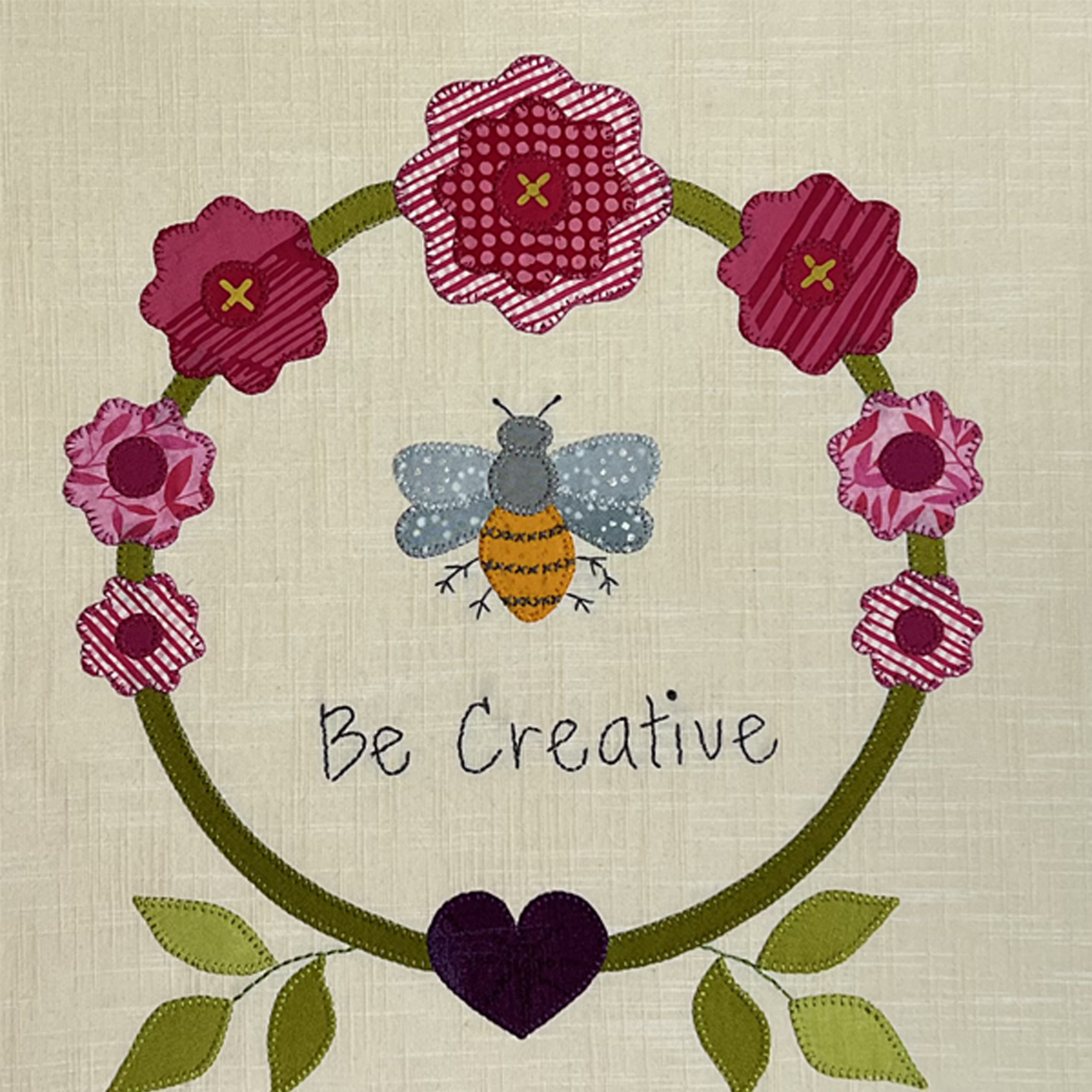 The Bee Wreath is a simple little machine appliqué project. Learn layering, tucking, and easy-to-achieve machine appliqué with Annie's method. Give your wreath a "Bee" sentiment by choosing the one that speaks to you - there are several to choose from. A little hand appliqué will complete your wreath.