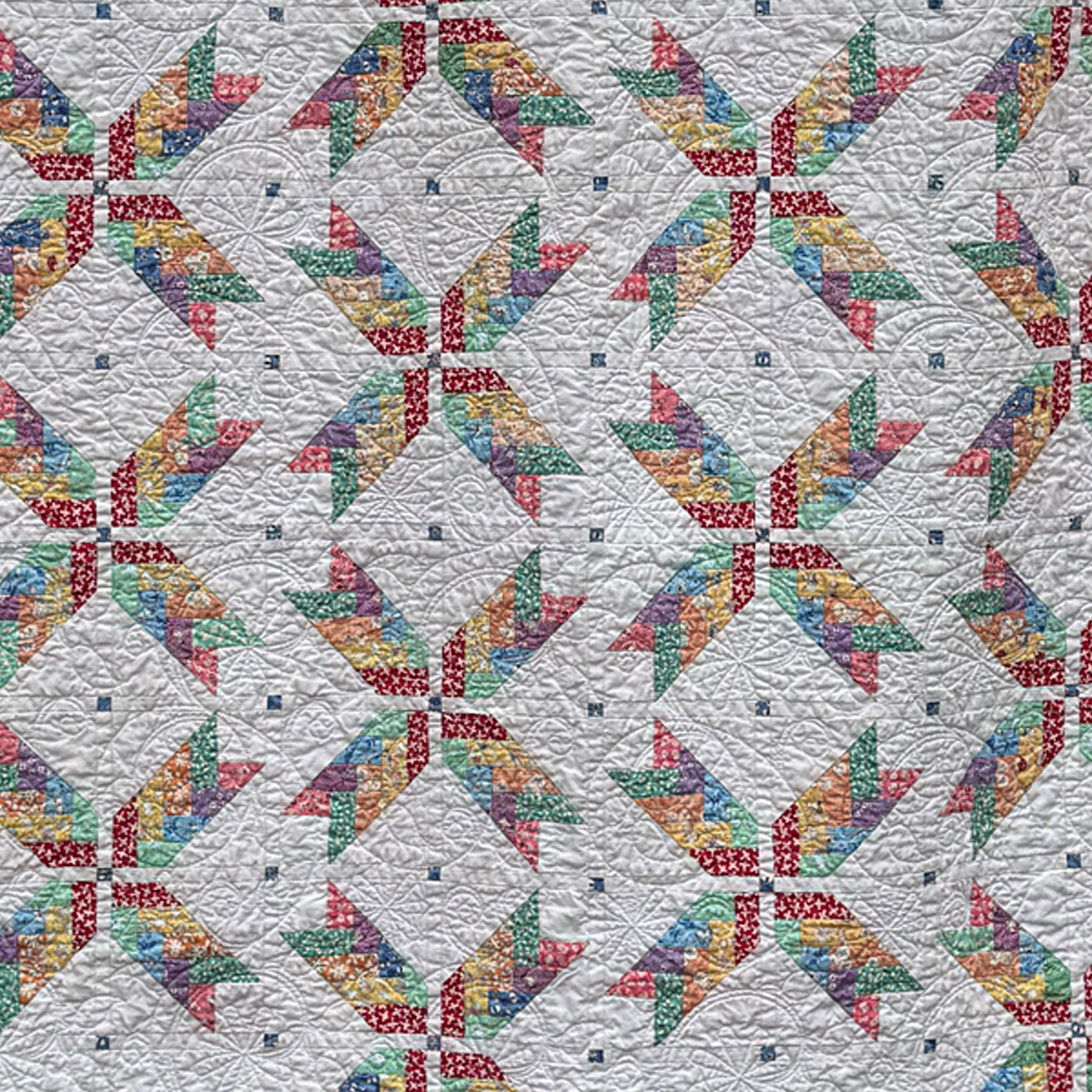 Get ready to twist and twirl your way through this fun and eye-catching quilt design! Braided Whirligig is a dynamic and modern quilt pattern that combines the playful movement of whirligigs with the timeless charm of braided blocks. Perfect for confident beginners and experienced quilters alike, this fat quarter friendly project makes the most of your favorite prints while minimizing waste. Grab nine of your favorite Fat Quarters and join Shannon Arnstein as she guides you step-by-step to make this charming quilt of your own.