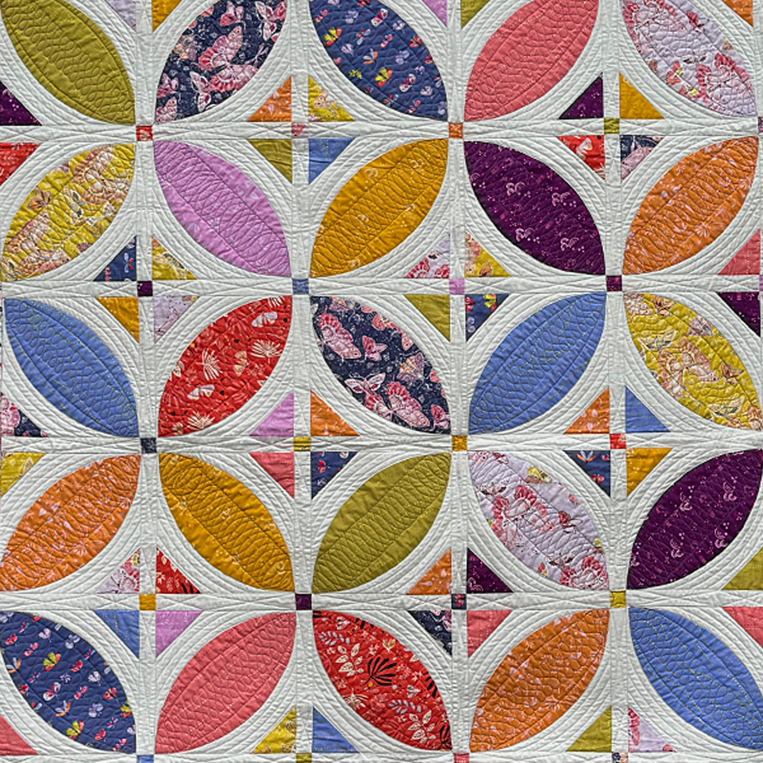 Pocket Full of Posies is a fat-quarter-friendly project. Grab twelve of your favorite fat quarters to make this sweet quilt. Whimsical, fresh, and full of color, Pocket Full of Posies puts a playful spin on the traditional Pumpkin Seed block! In this workshop, we’ll explore how curved piecing can be approachable—and even fun. Perfect for showcasing bold prints or fussy-cut favorites, this quilt invites creativity with each “seed” you stitch.